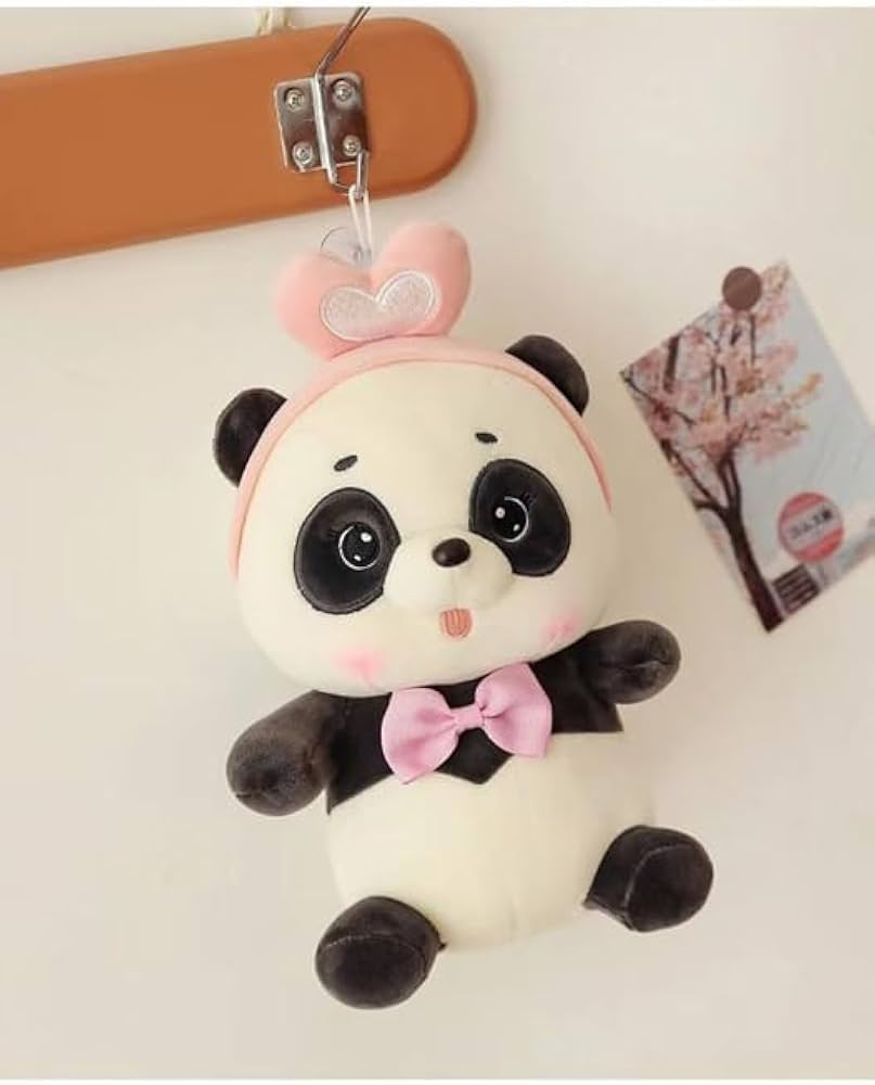 “28 cm cute panda plush toy with pink bowtie and heart headband”